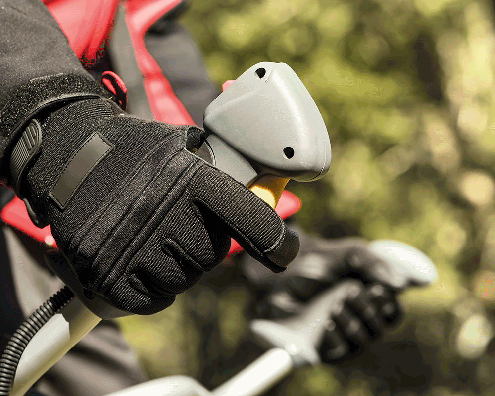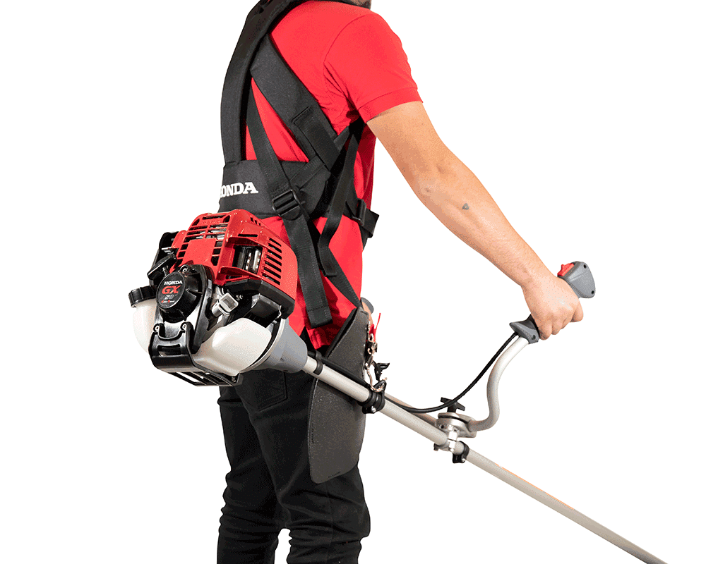Ein 47,9ccm Freischneider mit Doppelhandgriff, Komfortgurt und zwei Befestigungsmöglichkeiten.